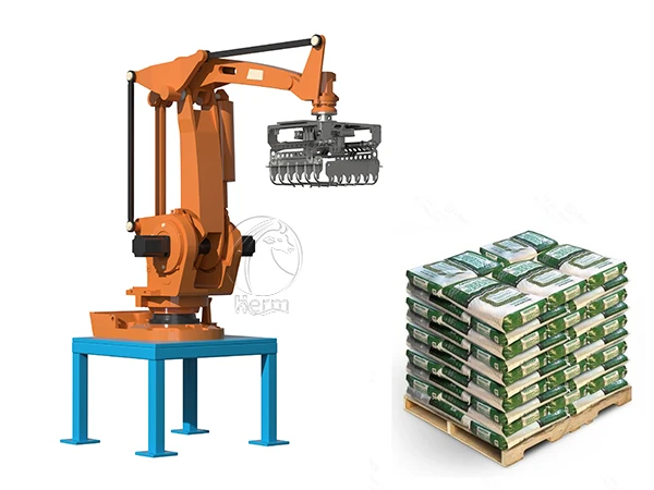 The palletizing robot is an advanced automation system designed to replace manual labor in end-of-line packaging, providing efficient, stable, and reliable palletizing for bags, cartons, and various packaged products. With high-speed operation, precise positioning, and consistent stacking quality, it significantly improves production efficiency while reducing labor intensity and operational costs.